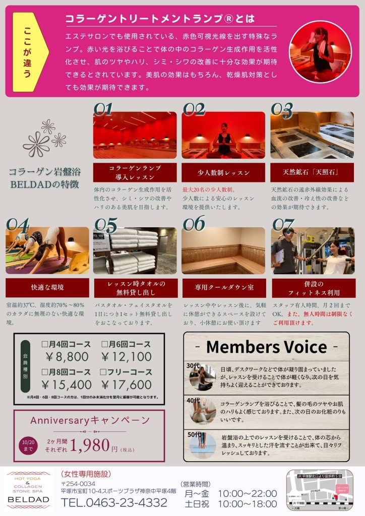 女性に人気の岩盤ヨガに、コラーゲントリートメントランプ®をプラス!