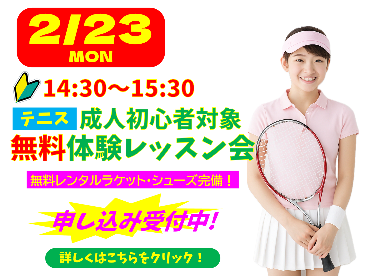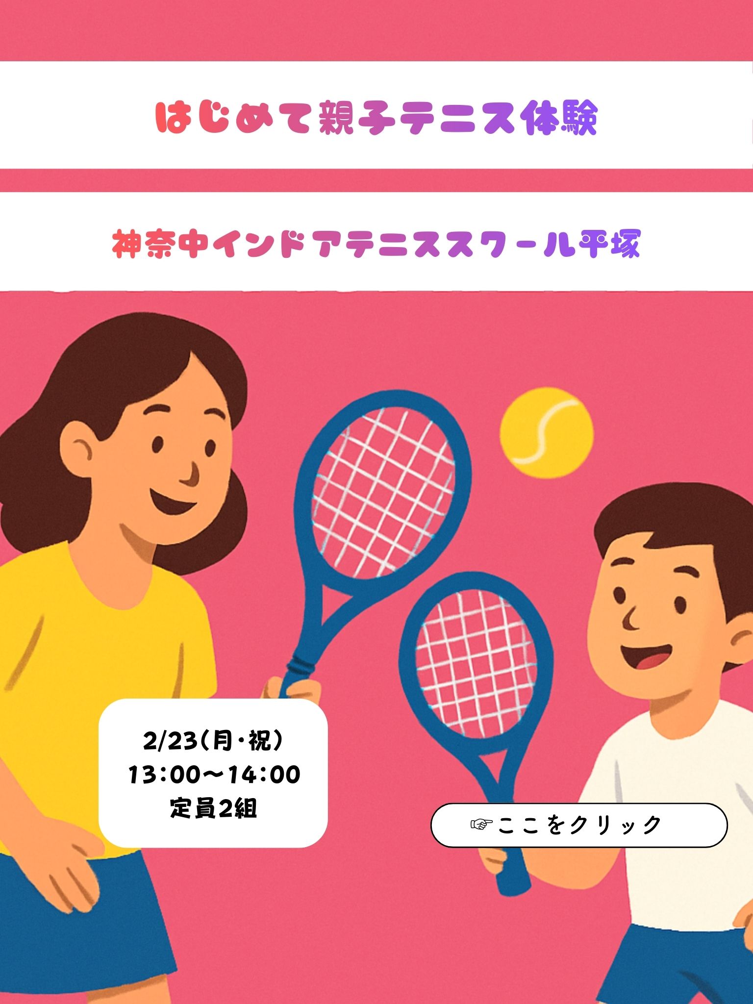 NEW テニス藤沢🎾2/23(月・祝)成人初心者対象無料体験レッスン会開催!楽しく動いて、キレイが続く!テニスで叶えるアクティブライフ✨参加申し込み受付中!