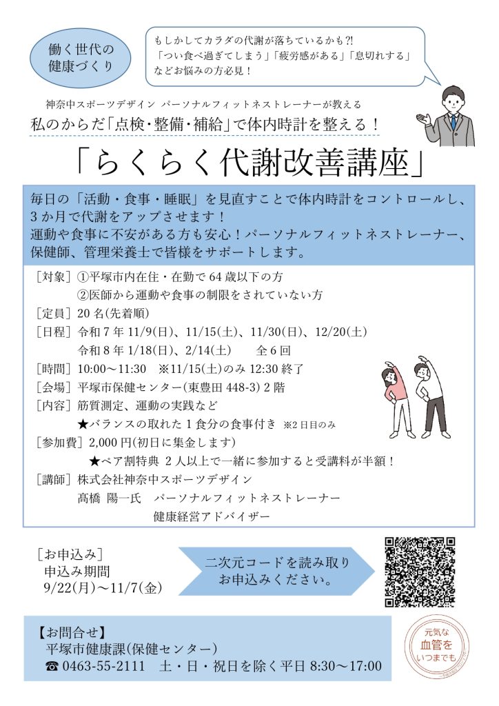平塚市が主催し、参加者を募集している健康増進に関する事業をご紹介します。