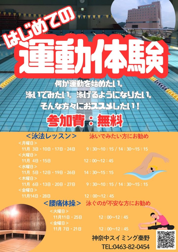 【スイミング秦野】大人の方 初めての運動体験