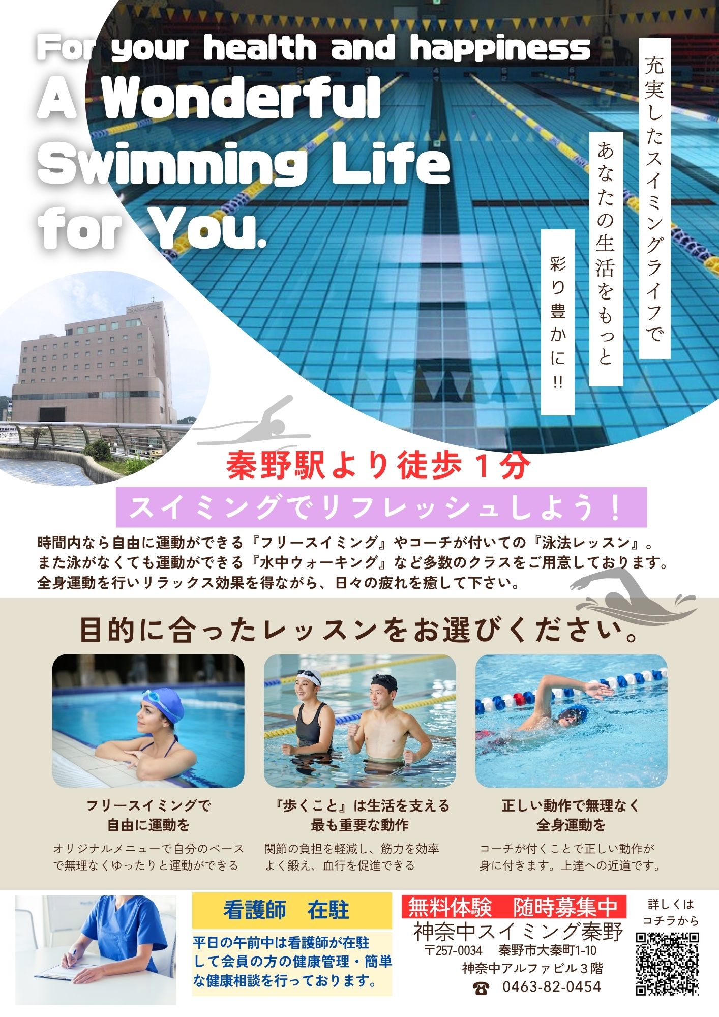 【スイミング秦野】日常生活の充実は健康から・・・。皆様に合った素敵なスイミングライフを。(大人クラス紹介)