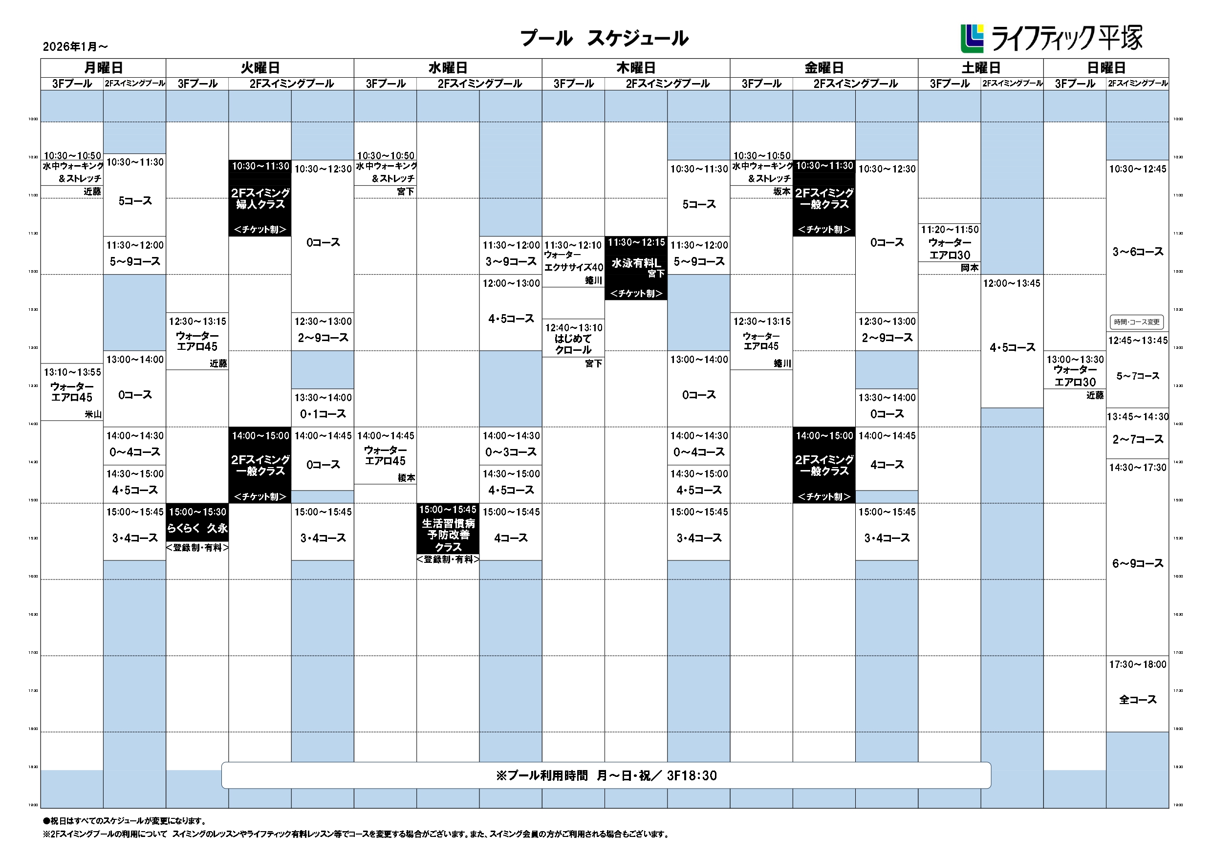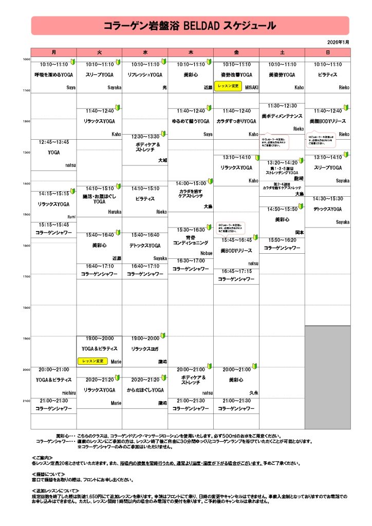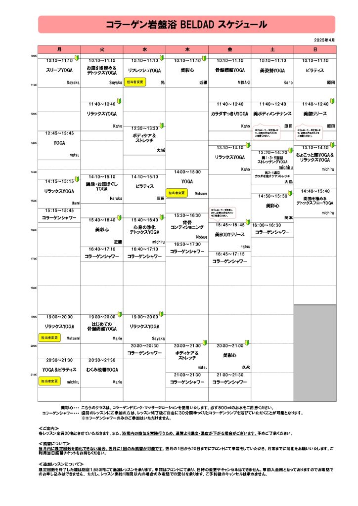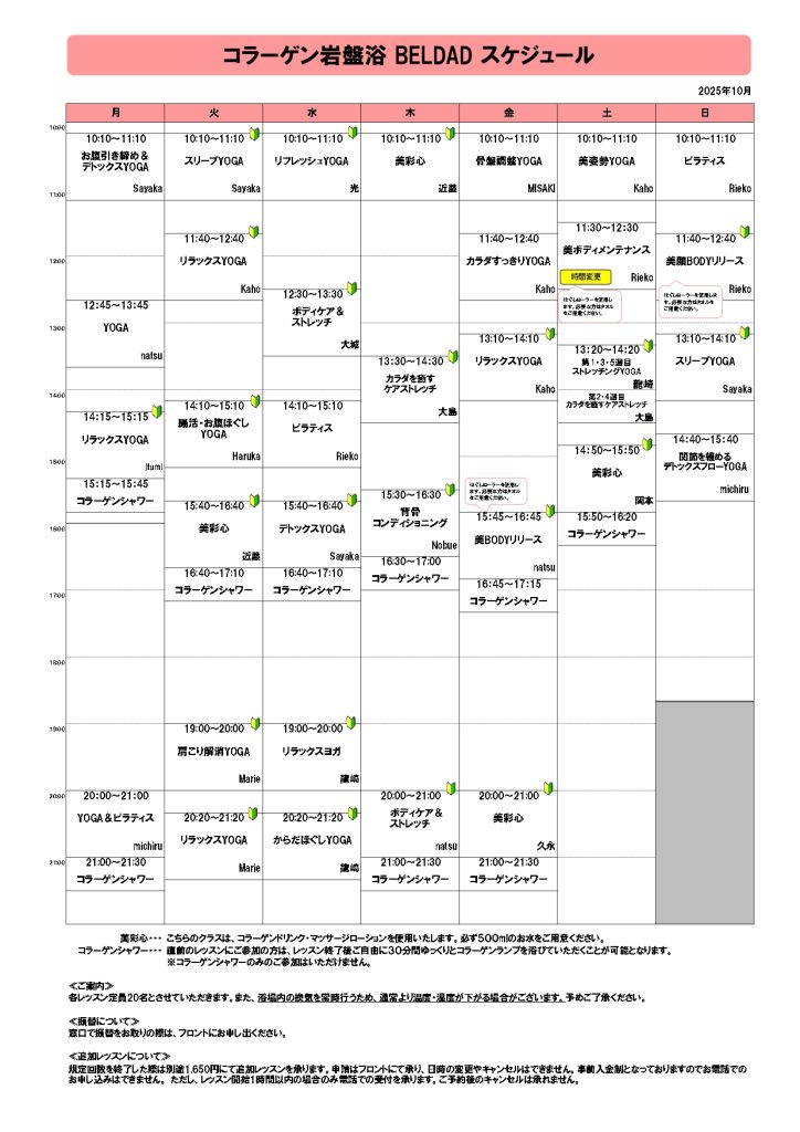 スケジュール レッスンスケジュール PDFダウンロード スタジオスケジュール プールスケジュール 岩盤浴BELDADスケジュール プログラム紹介 PDFダウンロード スタジオ内容 プール内容 お問合せはこちら