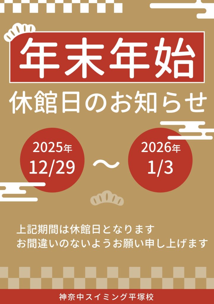2025.12.28お知らせお知らせスイミングスポーツ教室休館情報
