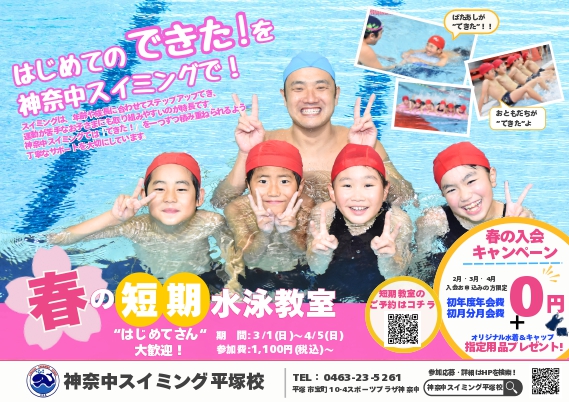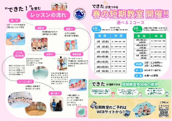 春から始めるスイミング短期教室受付中!