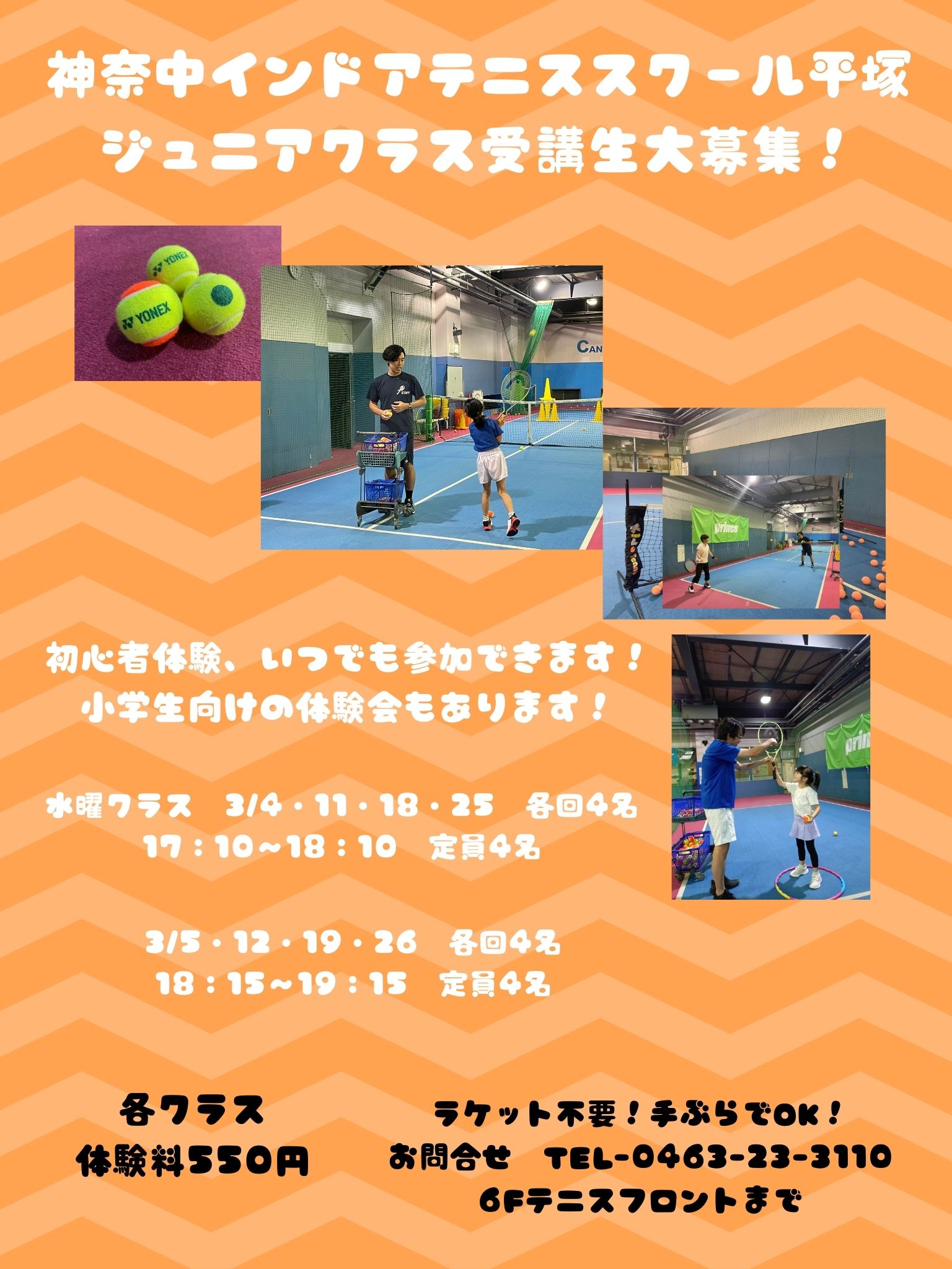 NEW (満員御礼!)テニス平塚🎾3/20(金・祝)小学生初心者無料テニス体験会開催(^^)/